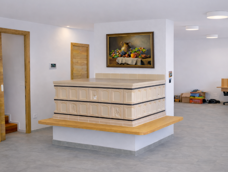 Srce kmečkega doma, ki ohranja tradicijo, a dopušča domišljijo pri obliki. Služi kot družabno stičišče, pečica in ogrevanje.